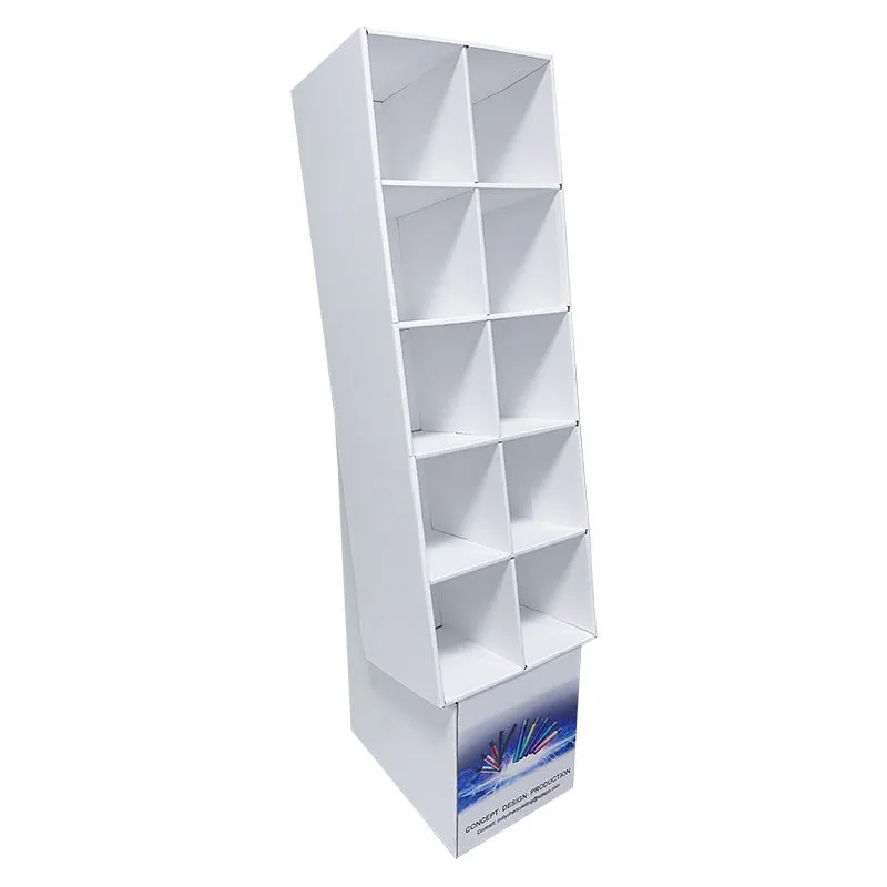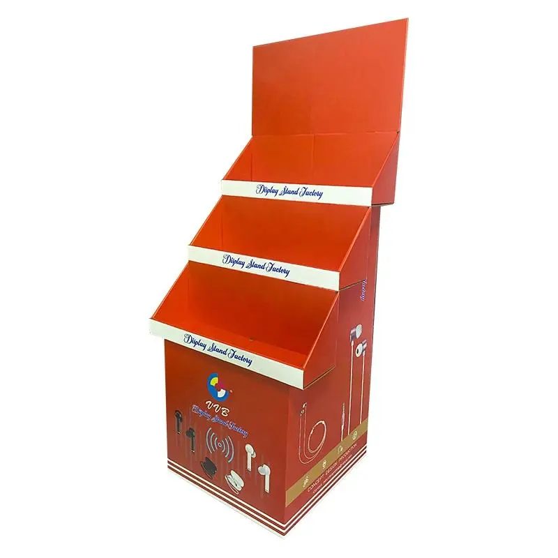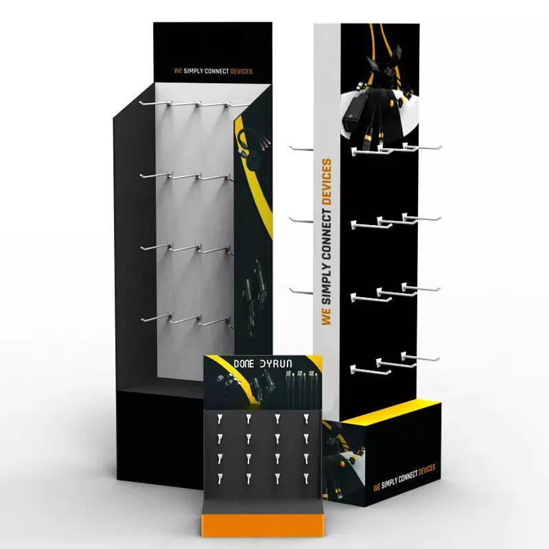 Constructed from high-strength corrugated or composite board with a modular design for easy transport and quick on-site assembly. The sturdy structure can be configured as multi-tiered shelves, stepped platforms, or rotating displays, integrating brand graphics, promotional messages, and product slots for organized and impactful presentation.